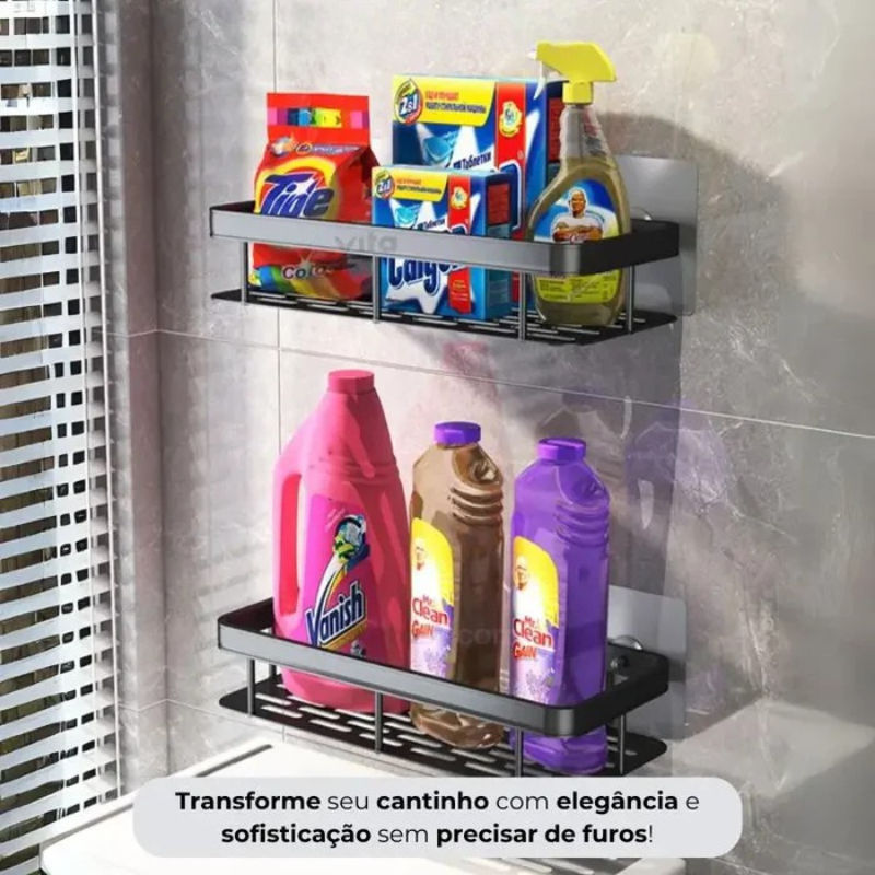 Imagine todos os seus shampoos, cremes e sabonetes perfeitamente alinhados em um suporte sofisticado, liberando espaço e trazendo harmonia para o seu banheiro. Você conquistou isso em minutos, sem barulho, sem poeira e sem o estresse de uma instalação complicada. É a sensação de ter um ambiente de revista, com praticidade e inteligência.