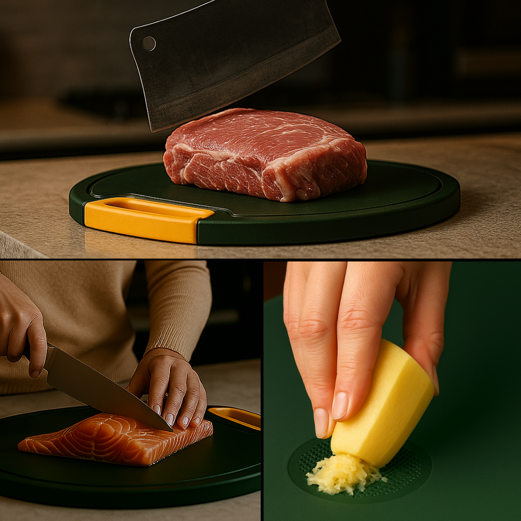 Chega de arriscar a saúde da sua família com tábuas velhas e contaminadas. A SafeCut é resistente a cortes e arranhões, evitando que bactérias se acumulem e causando intoxicações alimentares. Sua superfície segura mantém cada refeição livre de contaminação.