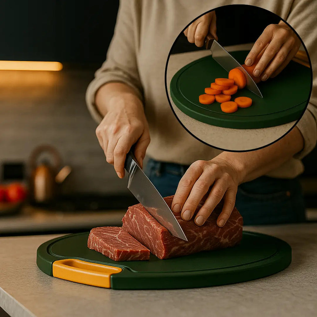 🍅 Zero contaminação cruzada: ideal para cortar carnes, legumes e frutas sem que um alimento contamine o outro.